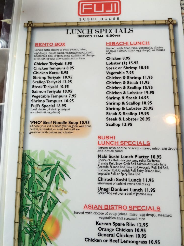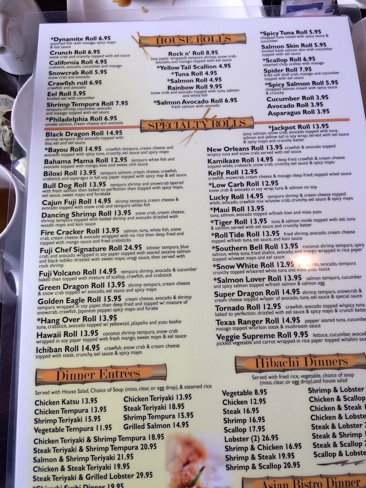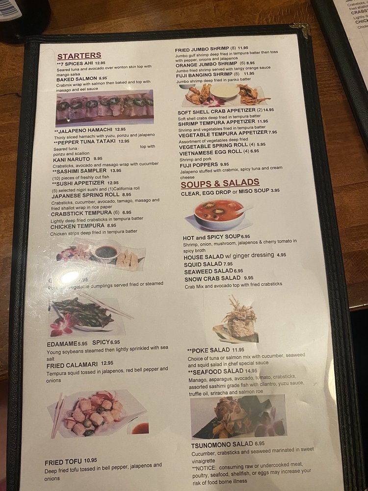 Located in Biloxi, MS, Fuji Sushi House is a Japanese sushi bar that offers a wide range of options for both sushi enthusiasts and those looking for a casual yet classy dining experience. From 7 Spices Ahi to Baked Salmon Crab to Chicken Tempura, the starters here are flavorful and unique. The fried rice dishes, including Blue Crab Fried Rice and Seafood Fried Rice, offer a delicious twist on traditional favorites. The soups and salads, such as Clear Soup and Poke Salad, showcase fresh ingredients and bold flavors. With vegan and vegetarian options available, Fuji Sushi House caters to a diverse range of dietary preferences. The restaurant also offers delivery, takeout, and catering services, making it a convenient choice for any occasion. Whether you're dining in or taking out, Fuji Sushi House is a must-visit for Japanese cuisine lovers.